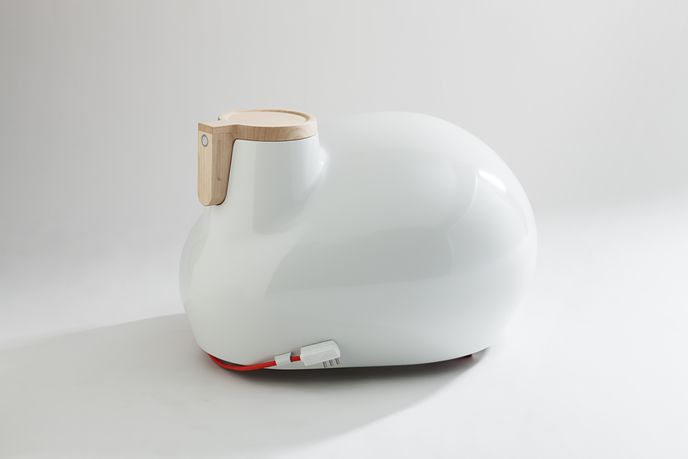 The radiator can be moved around a space, warming only a small area as needed, thus providing an energy-efficient heating solution. Its body is aluminium, while the top platform and handle are made of oak. Satyendra Pakhalé says he wanted to create an object ‘that applies the technology of today and brings back poetic imagination to an object of utility’.