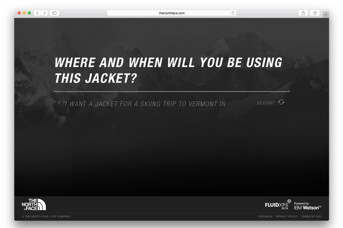 Mona, for instance, is a personal assistant app that goes on shopping missions, searching for items on the users’ behalf based on criteria such as size, colour and price. The North Face is also experimenting with smarter searches, using IBM Watson technology to create a more natural means to the perfect jacket in its XPS microsite.