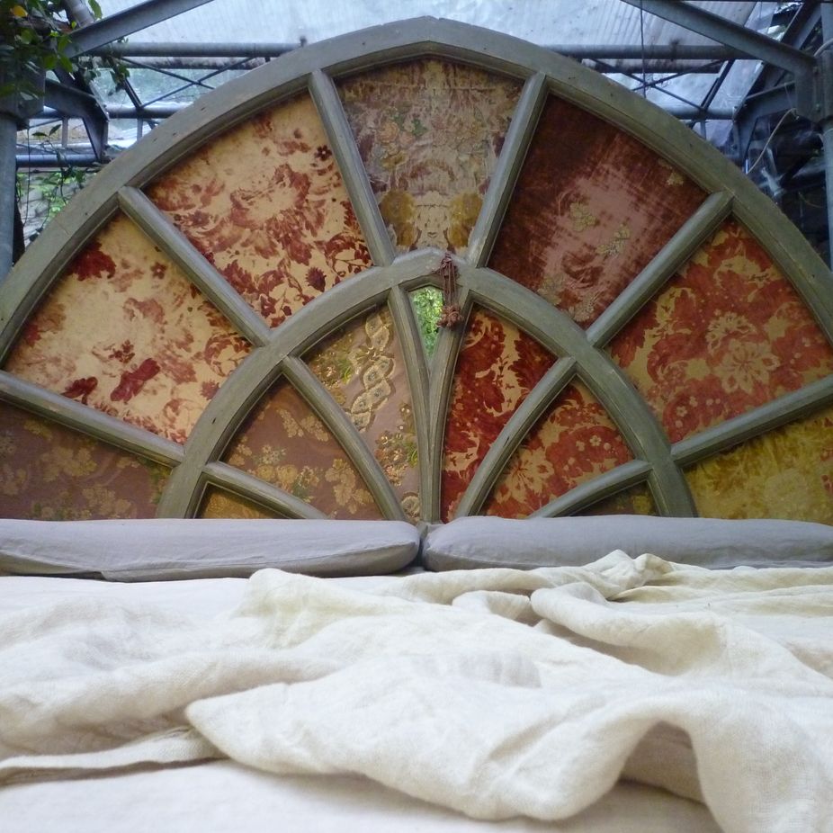 The result is the Home from Home collection, a bed, chests of drawers and lamps created in the James Plumb signature style. The bed, for example, is made of materials that Russell and Plumb found in, and reclaimed from, Orlandi’s vast archives – in the cantinas that sit below the store, and in her homes. Because Orlandi’s family, as Hannah Plumb says, ‘used to be involved with fashion’ and because Orlandi ‘doesn’t throw anything away and is a great hoarder’, they had plenty of room – and rooms – in which to find inspiration and raw materials.