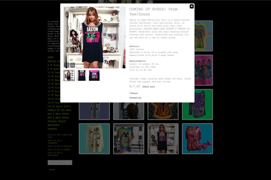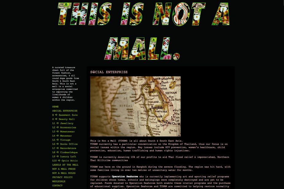 This Is Not A Mall is a social enterprise designed to improve the lives of people in south and southeast Asia. The site donates 15% of its profits to help Thai food relief, and impoverished Thai hill tribe communities.