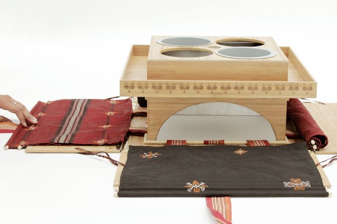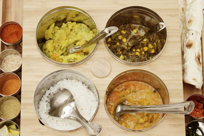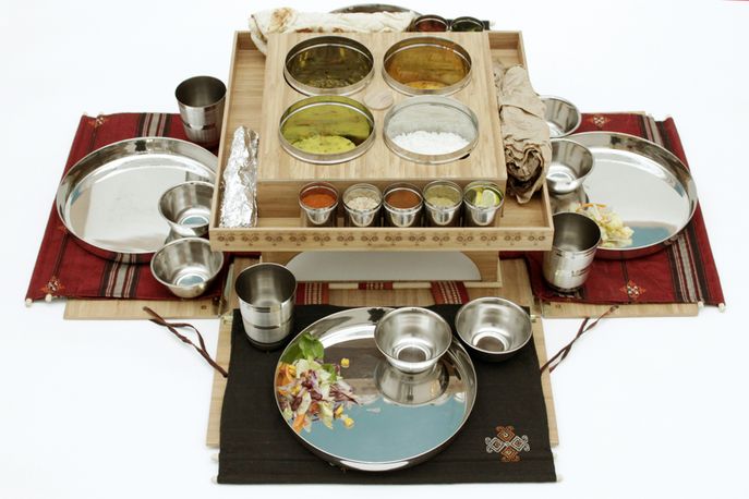 An increase in the number of middle-class career women in India means many struggle to find time to cook, but ordering regular takeaways is still frowned upon. Dine In provides healthy dishes prepared in a centrally managed kitchen and presented in a fold-out box that sits on a hob to reheat the food.