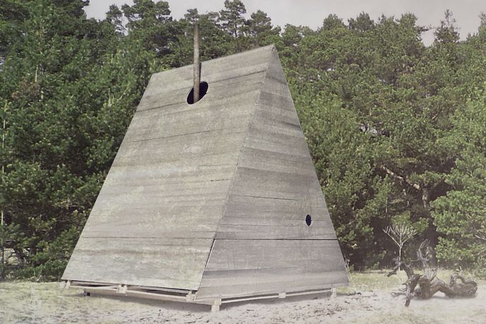 The only furniture inside is a series of wooden boards that can be used as tables, beds or benches. The wooden facade can also be folded open, exposing guests to the elements.