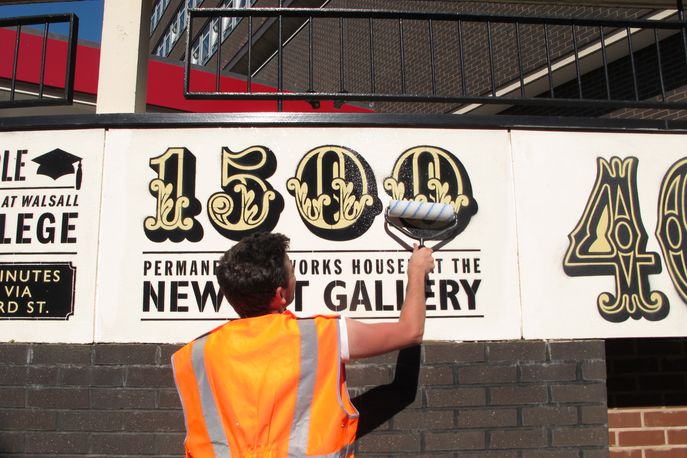 Designed to engender civic pride by displaying a series of positive local facts, a 22m long mural in a local shopping centre, created using laser-cut stencils and micro-porous paints, directs pedestrians to some of the town’s hidden gems.