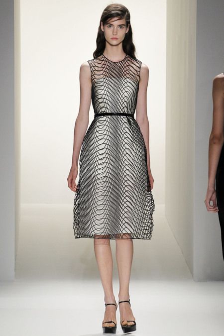 New York – Calvin Klein’s spring/summer 2013 collection, presented on the final day of New York Fashion Week, included a bold use of materials that referenced sportswear but delivered a high-octane futurist punch.