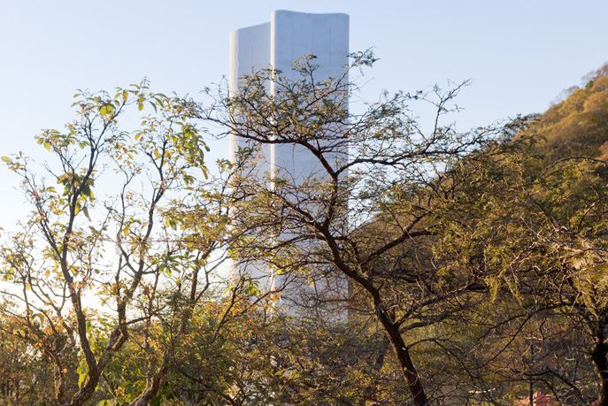 The new white concrete monolith by Swiss architects Christ & Gantenbein sits on one side of the Cerro del Obispo peak, overlooking the Jalisco mountain range. Designed to symbolise and facilitate spirituality, the landmark offers visitors an intuitive way to experience sublimity and wonder. On entering through a small door at ground level, the eye is drawn to the top of the structure, where natural light floods down through its curvaceous outline. The column’s organic-looking cross-section is perceptible only from the inside and is at odds with the linear pillar visible from outside.