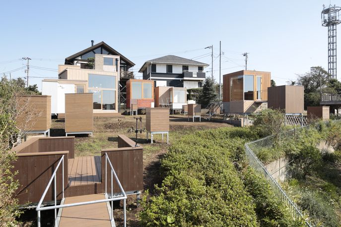 With impressive views of Mount Fuji and the picturesque island of Enoshima, the site is a peaceful refuge for urbanites, who can enjoy their own detached private quarters while congregating in a central hub.