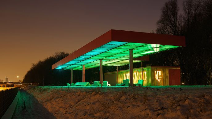 Netherlands – Amsterdam-based French architect Sophie Valla has transformed two 1980s petrol stations into a cultural space by adding a light installation.