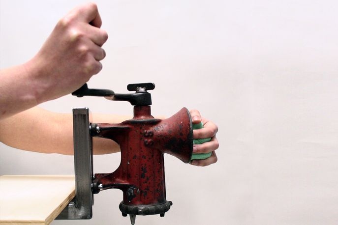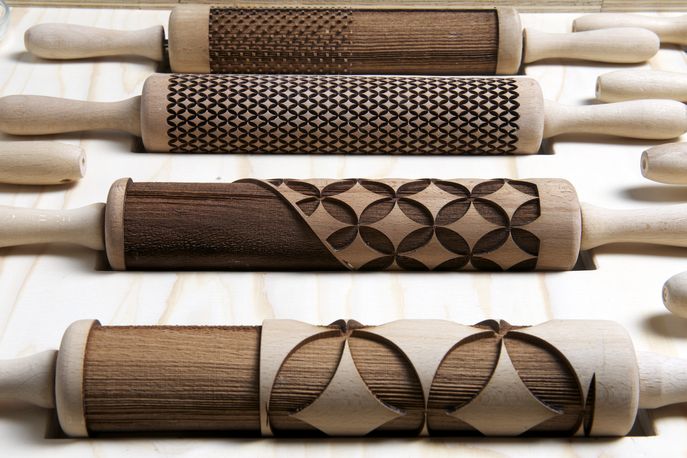 The Altered Appliances collection includes Rollware, a set of traditional-looking rolling pins with different shapes cut out from the wood that can be used to make edible tableware by cutting extravagant patterns into dough. The range also includes Extrudough, a collection of biodegradable tableware made with a modified meat grinder.
