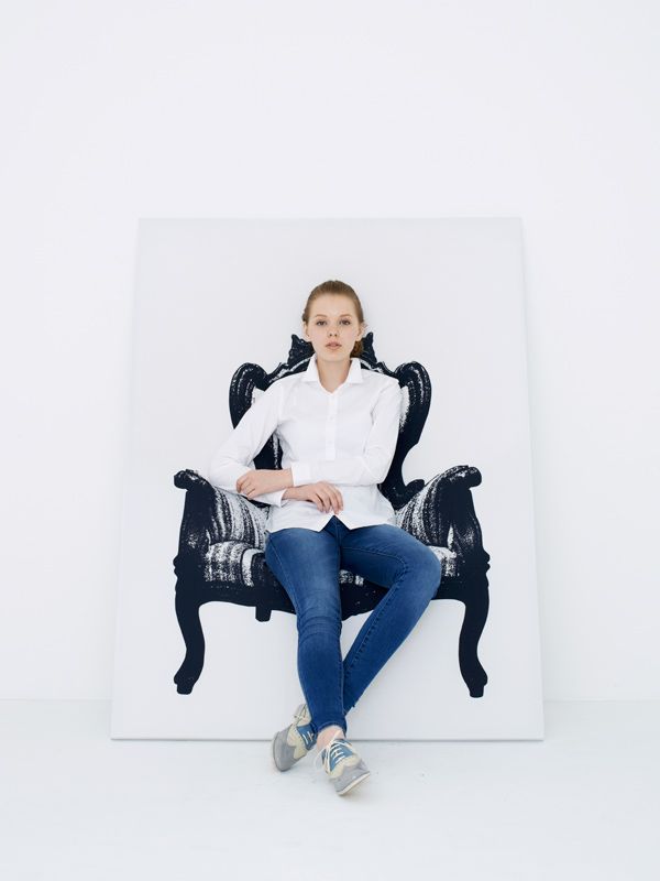 The Canvas collection features seemingly flat canvases with a screen-printed drawing of a chair or a sofa stretched over a wood and aluminium frame. The canvas is made from an elastic fabric which, when leaning against a wall, can sustain weight and moulds to your body.
