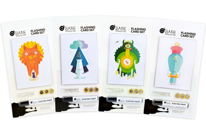 The Flashing Card Set enables people of all ages to create their own light-up greetings cards and comes with the company’s signature non-toxic, conductive carbon paint, a flashing LED light bulb and a battery. Step-by-step instructions show children how to connect the bulb to the battery using the paint as a conductor, teaching them about electricity and creativity at the same time.