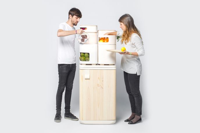 Molinas designed a set of ceramic containers which harness the heat that emits from the top of a fridge. They have clay walls with a space in-between which holds water. The water cools as the hot air travels up, making the container the perfect temperature for fresh food that often becomes mushy in a too-cold fridge.