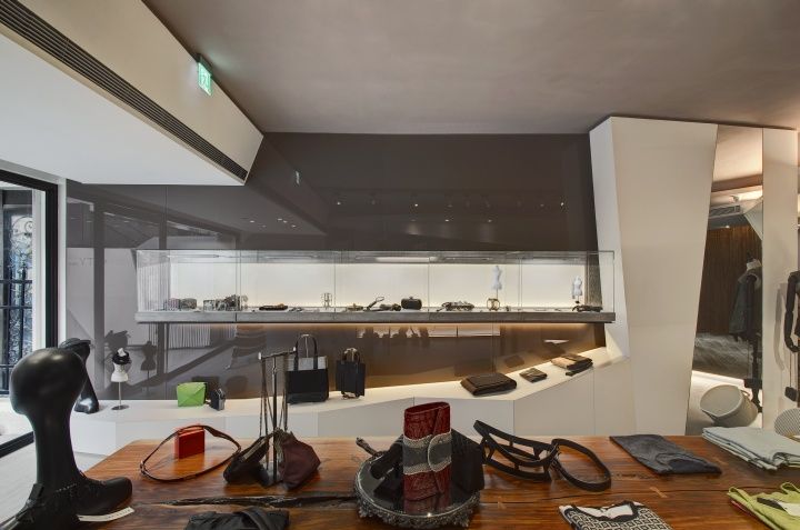 To create harmony throughout the space, the interior has a neutral aesthetic, with muted tones of grey and green. It is the ideal colour palette for displaying the variety of products on offer, from fashion to food. The architects, TBDC, created visual interest by using enduring materials that look like cement, cutouts, and angles to provide depth and new ways to show off the clothes.