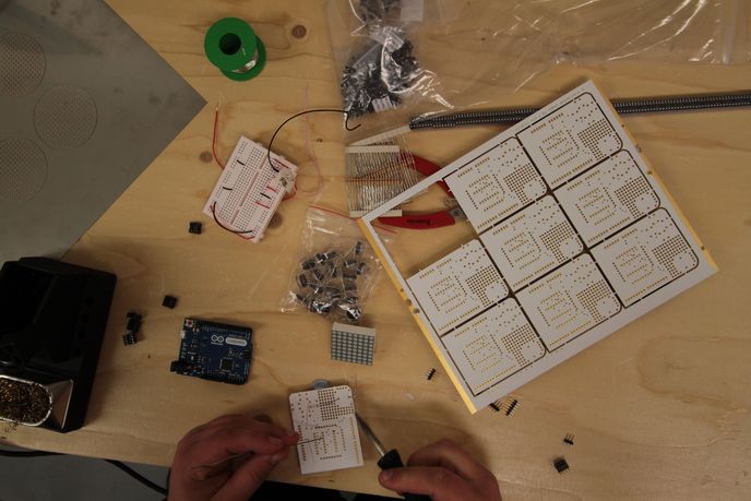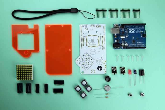 The kit comes with all the pieces needed to build a hand-held games console, complete with an 8×8 LED screen, customised software and an Arduino Uno board, which can be used to code your own games. The result looks like an old-school Game Boy, plays lo-fi games such as Snake – which is included – and provides endless possibilities for the imaginative gamer.