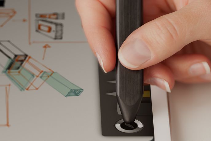 Inspired by a carpenter’s pencil, the sensor-controlled wireless device is embedded with Bluetooth technology that interacts with a coordinating downloadable app, enabling users to draw, blend, colour and erase on an iPad screen by simply flipping the pencil or swiping across the page.