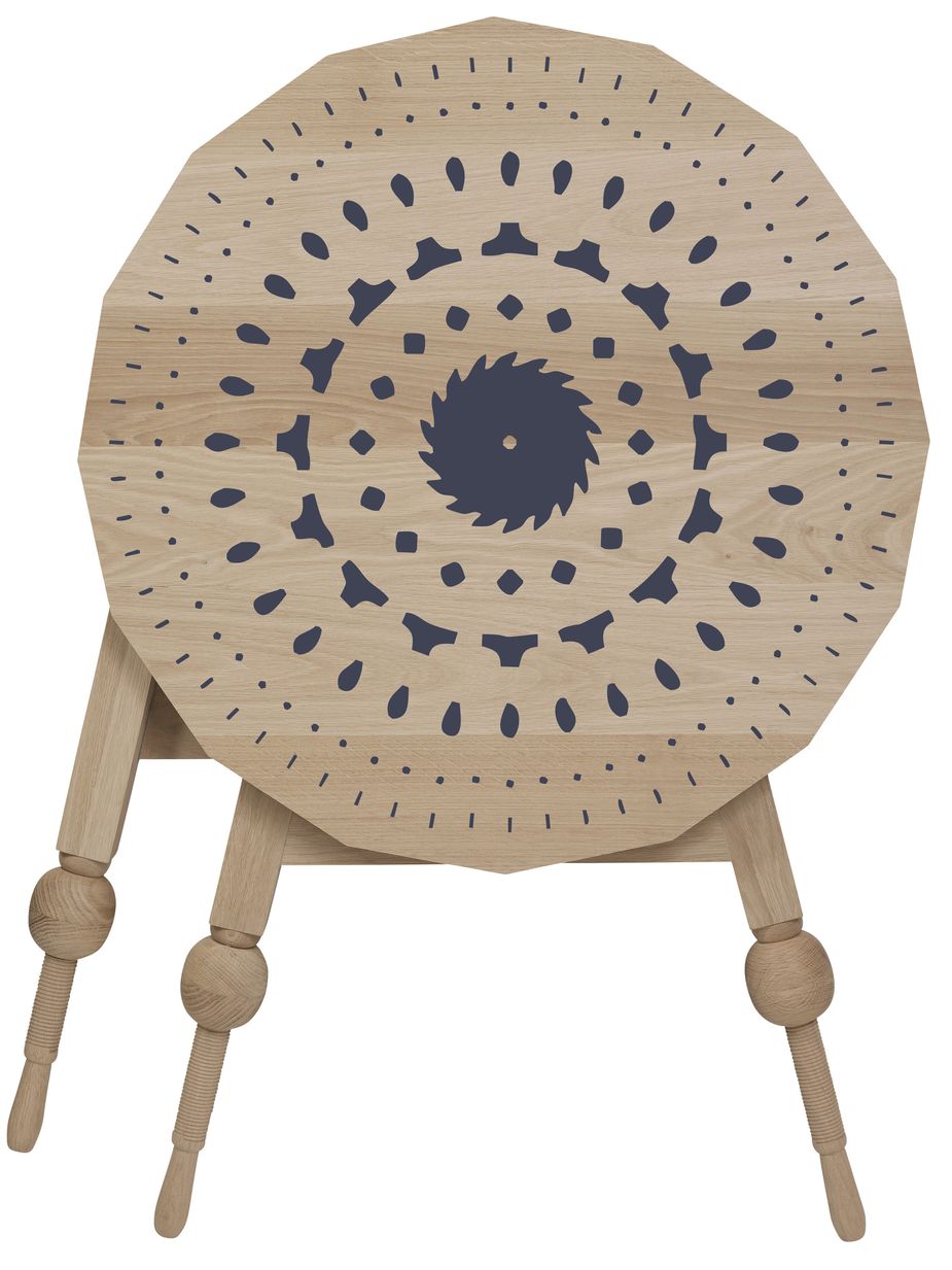Through his initial research, Meindertsma discovered that woodworkers stopped using Hindeloopen around 1800, after the Dutch government introduced a tax on oak wood – Hindeloopen did not work so well with other woods. Now there is no such tax, and Meindertsma has revived the colourful style and heavily patterned technique of Hindeloopen using oak.
