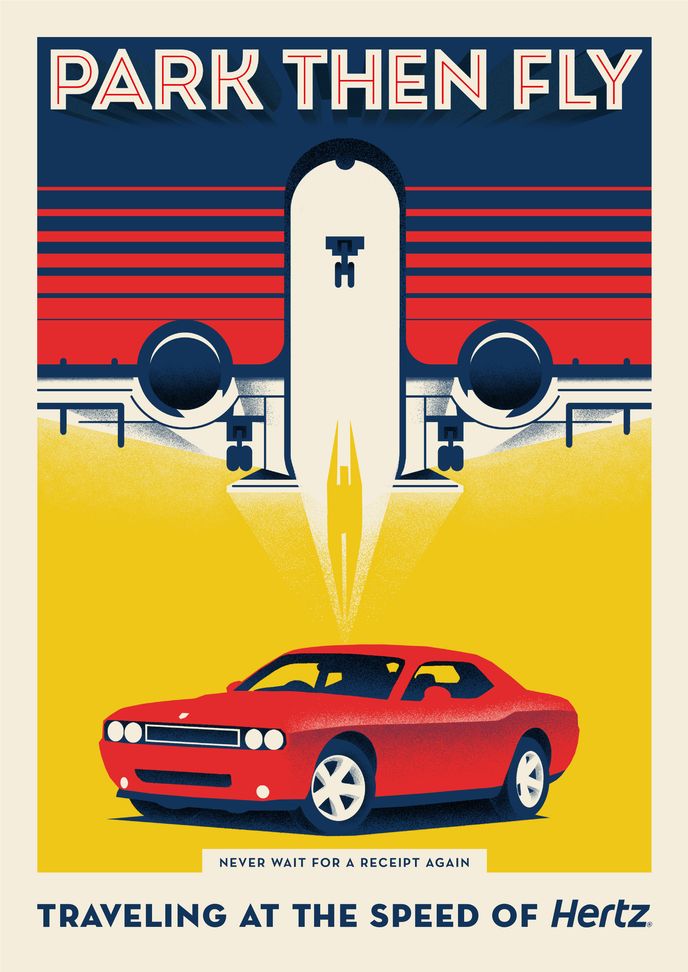 Each poster introduces a new and improved Hertz service feature such as Park Then Fly and Land & Drive, all designed to maximise efficiency for the customer.