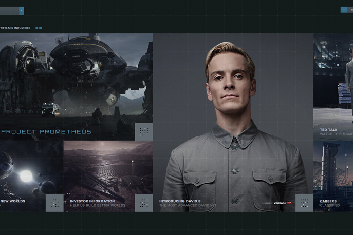 The campaign includes a Project Prometheus website that blurs the lines between the Prometheus world and reality by presenting film scenarios as fact. The site also navigates to a website seemingly run by Weyland Industries , a fictional robotics company that appears in the film.
