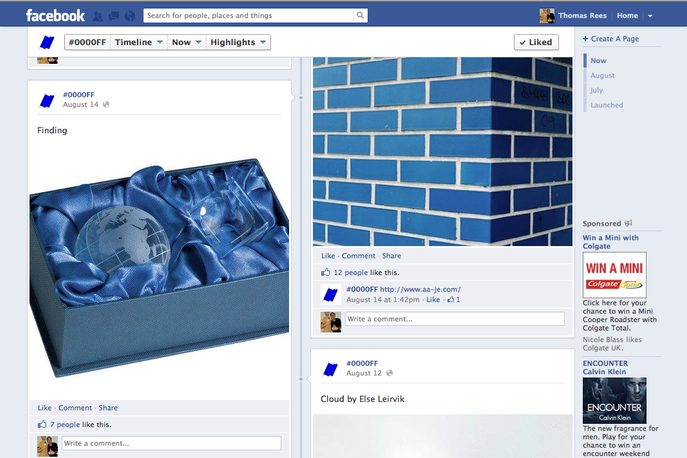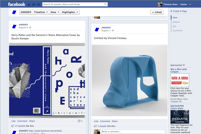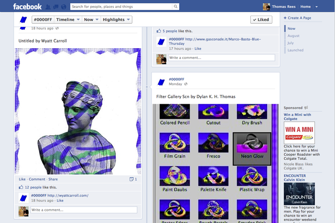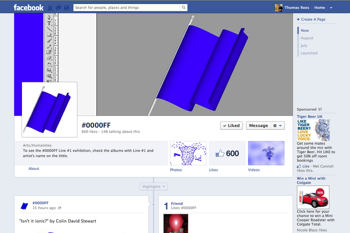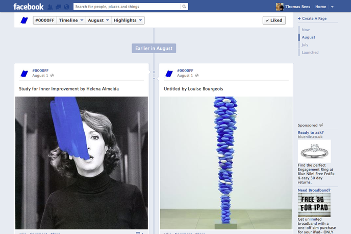 Curated by Georges Jacotey, the online gallery, called #0000FF, shows only works of art featuring the same blue colour as the Facebook banner.