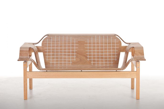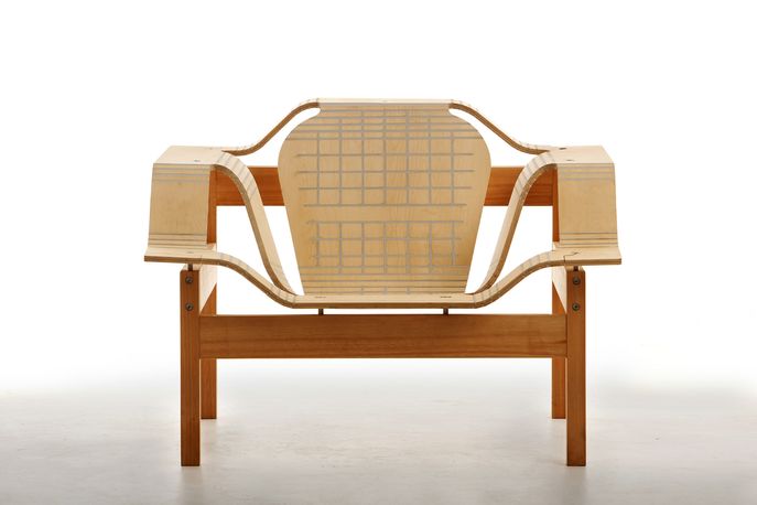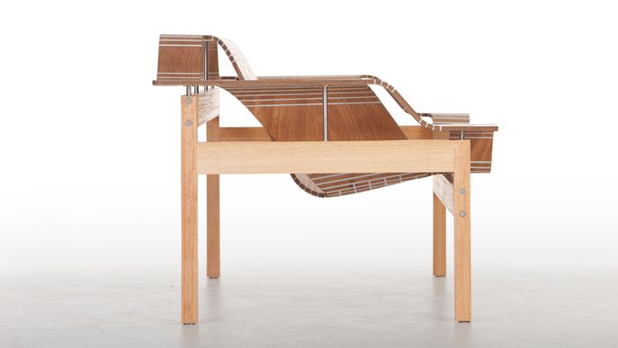 The Stratflex Skin is a malleable material made from Finnish plywood that is used to cover locally sourced saligna frames to create flat-packed armchairs and furniture that can be easily assembled.