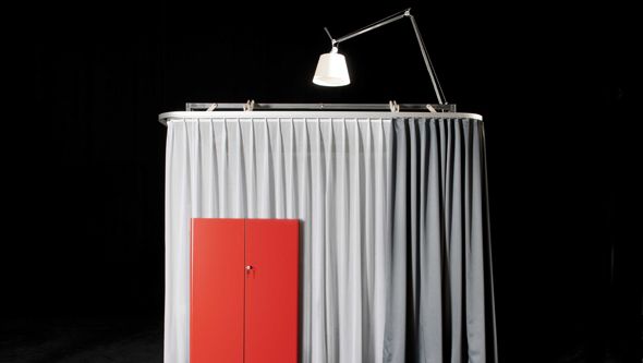 The Hotello is a four-square-metre unit that offers a space to sleep and work. It includes a metal frame, a bed, an office area and translucent and absorbent curtains, all of which can be folded away into a case on wheels, enabling users to take it wherever they go. It can be reconfigured in different ways, enabling users to tailor it to their specific needs.