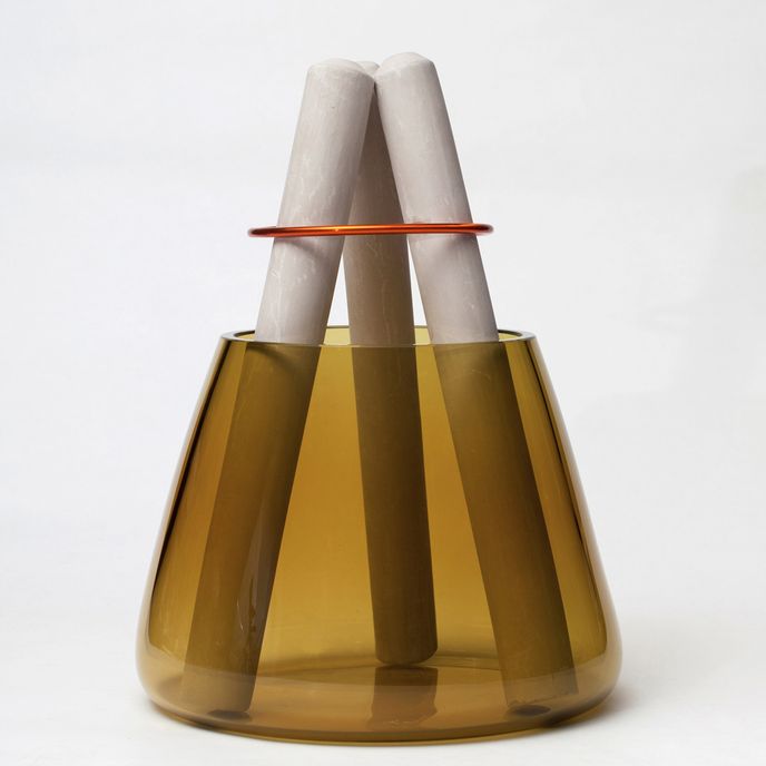 The city of Venice, and the colours and properties of the salty water that surrounds it, was the inspiration for the collection. Produced in collaboration with a local Murano glass specialist and a perfumer, the pieces include ambient fragrances and a diffuser, delicately dappled textiles and a rough textured rose pink marble LED lamp.