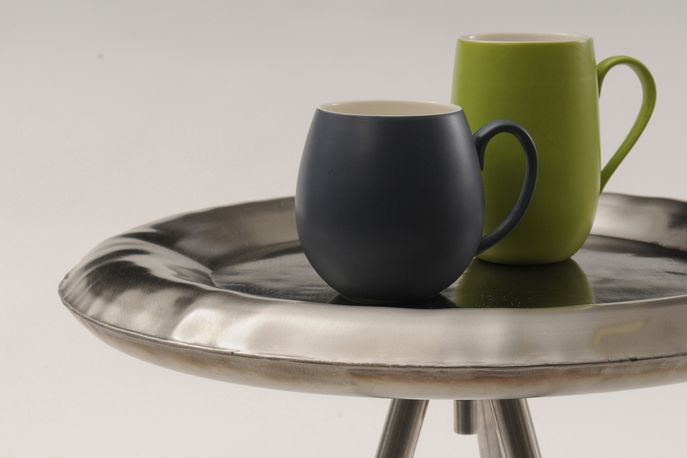 The experiential range includes the Yayu table and the Dan bench. The pieces have wooden legs and a metal top or seat that is blown up with a bicycle pump. As the metal inflates the joints tighten and fuse together to become objects that people can sit on or place things on.