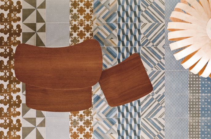 The new Azulej line is a re-interpretation of Victorian domestic floor tiles using digitally printed patterns. The result is a collection of sharp geometric graphics with Mid-century Modern overtones that will bring understated Mediterranean charm to interiors.