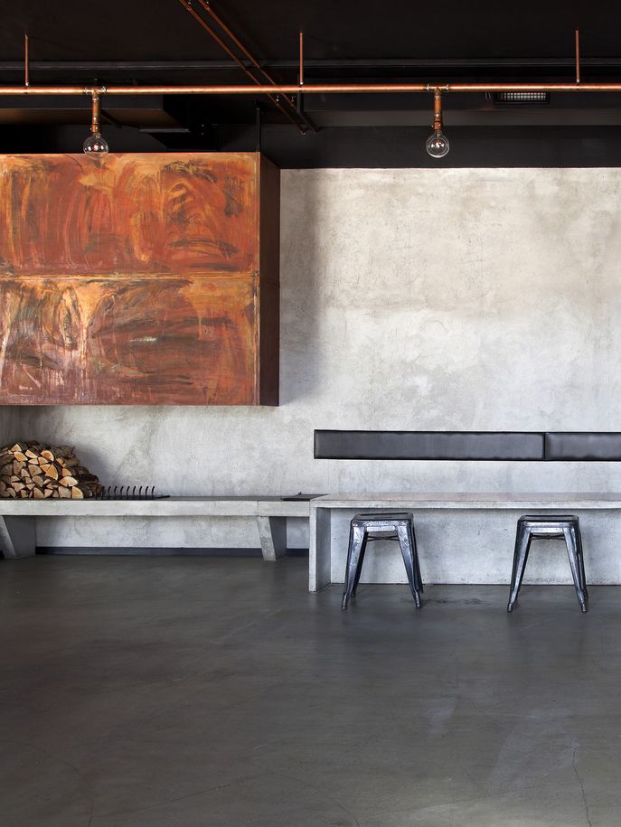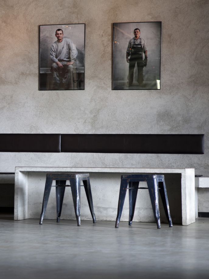 ‘The natural raw atmosphere of the space was kept and used as a base for the concept,’ writes Lindvall. ‘Floors were made of concrete and casted benches were mounted directly onto the walls.’