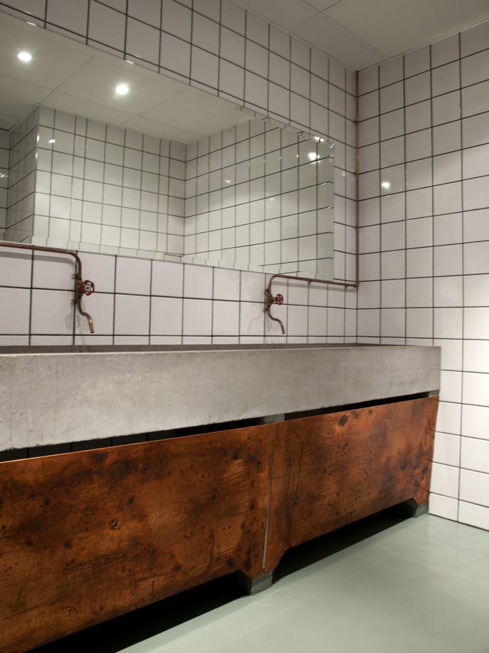The venue, called Restaurang & Bar Nazdrowje, uses repurposed raw materials rather than luxurious furnishings. As a result, the design invokes a sci-fi feel, reminding LS:N Global of Fritz Lang’s Metropolis, with brass pipes, valve light bulbs and concrete surfaces.