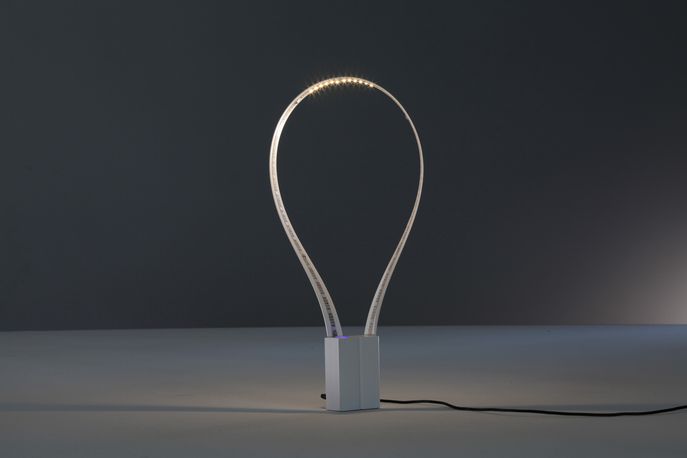 A curvaceous LED strip is secured in two magnetic metal bases that can be moved to change the angle of the light. The LED lights, which resemble little stars, shine light indirectly on the task at hand. The Fluida lamp is the winner of the Young & Design Award 2013.