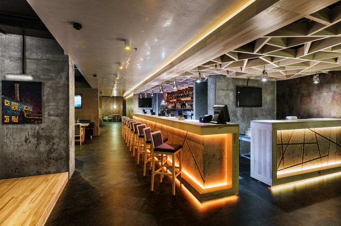Beton, which takes its name from the French phrase béton brut, meaning raw concrete, is a karaoke bar, hookah lounge and dining room designed by architect Ivan Yunakov.