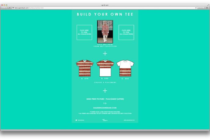 The Build Your Own Tee tool on the Agi & Sam website invites customers to select their favourite print by browsing through the brand’s Facebook photo albums.