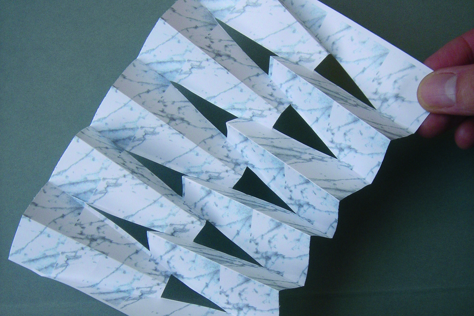 This was the challenge that architect Manuelle Gautrand faced when designing the Origami office building on Avenue de Friedland, near the Arc de Triomphe. According to regulations, the building had to incorporate stone into its façade to fit in with the rest of the street. Accordingly, Gautrand and her team used a traditional material, marble, and manipulated it to look as light as paper.