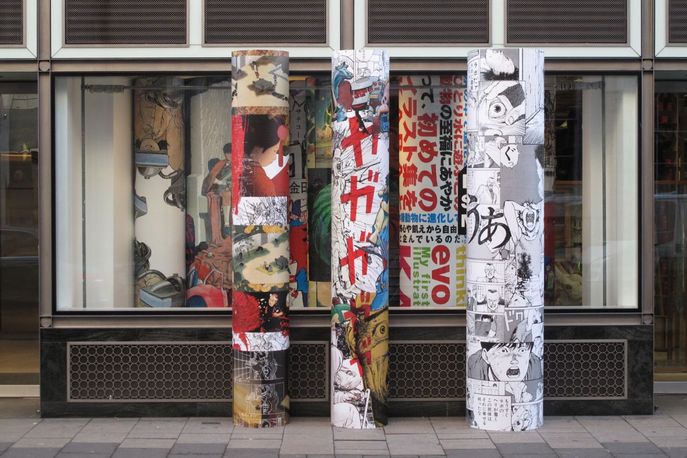 On the ground floor, visitors are welcomed to Dover Street Market with the comic book artistry of Japanese creative Katsuhiro Otomo. The basement bookstore Idea Books has been taken over by Tar Magazine and Michael Hoppen Gallery in an installation called Anonymous, which celebrates vernacular photography from the 20th century, while another installation showcases Aitour Throup’s New Object Research collection. For more on Throup’s work, see our Portfolio of the designer.