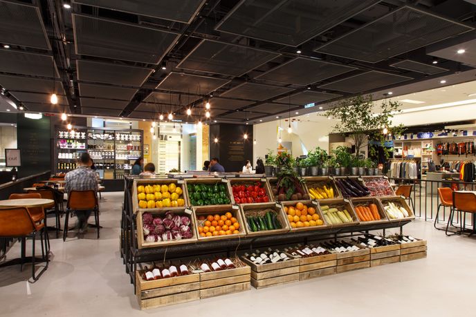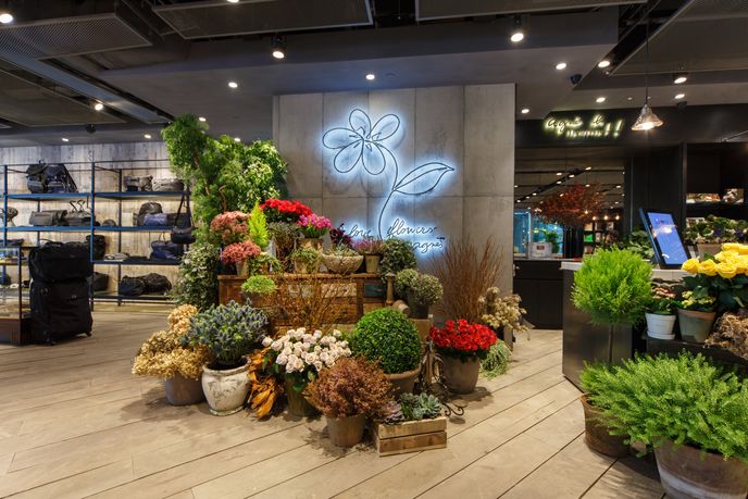 The store extends the brand’s core business to include a florist, a travel concept store, a chocolate boutique, a café and a bookstore, all under one roof.
