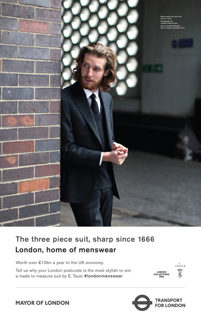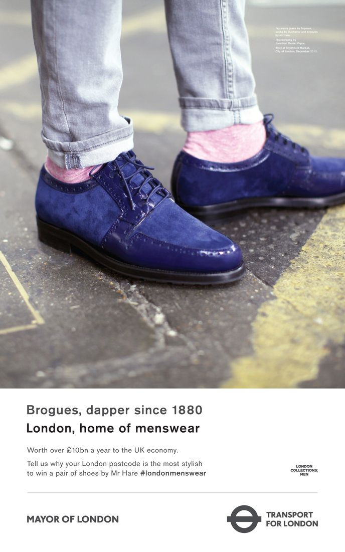 The campaign, which coincides with London Collections: Men, London’s men’s fashion week, is designed to highlight iconic fashion looks invented in the British capital. Brogues by British shoe label Mr Hare and a made-to-measure three-piece suit from Savile Row tailor E Tautz feature in London Underground posters as prizes in the London Home of Menswear competition. To stand a chance of winning, Londoners must explain on social media why their postcode is the city’s most stylish.