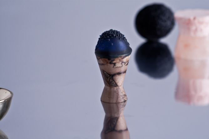 In her Morphologies collection, Forrer turns to natural materials such as alabaster and lava to create tools which can be used to mix oils and powders and which can also help to cleanse the skin.