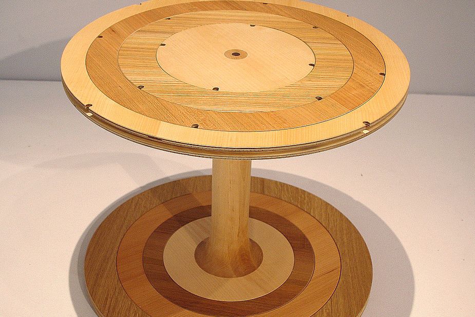 The items on show, including a stool designed by Charlie Heyward and Peter Bingham, and a bookshelf by Larry Lopez Diaz, have been made without glue, screws or nails using locally sourced wood.