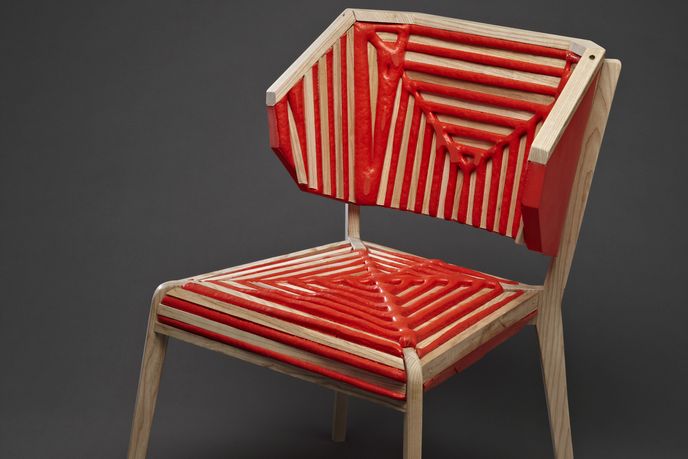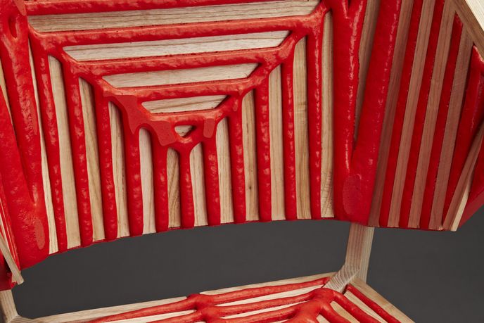 In her 75% Control furniture collection, Doron brings concealed and hidden materials to the fore. To create the pieces, Doron, who previously worked as a development manager in the plastics industry, poured polyurethane foam into wooden structures.