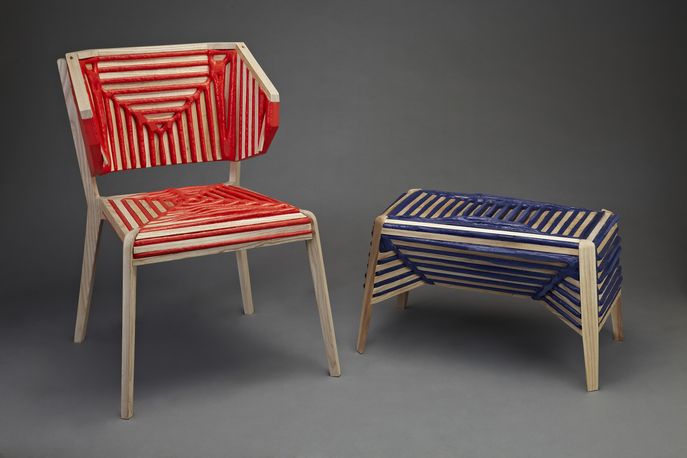 Once poured into the wooden structures, the polyurethane foam expands and bonds the wooden elements together. The resulting pieces share a similar hand-made, hacked aesthetic to those featured in LS:N Global’s DIY design direction.