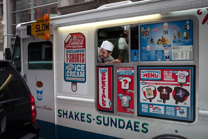 To promote this unexpected collaboration, the two brands embarked on a truck tour of America. Stopping in three key states, Johnny Cupcakes and Junk Food Clothing sold their t-shirts in playful packaging shaped like ice cream tubs, and handed out free ice creams to every customer.