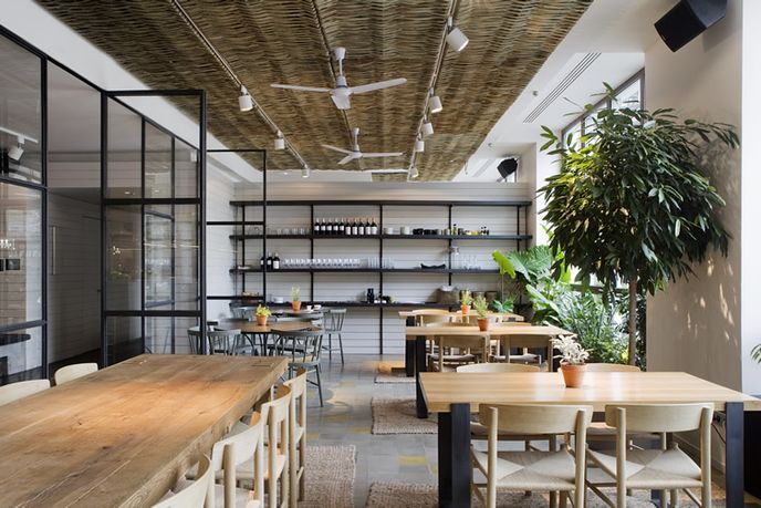 At Ana La Santa there are four eating areas, visually demarcated by different but cohesive interior spaces, created by studio Sandra Tarruella Interioristas.