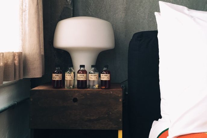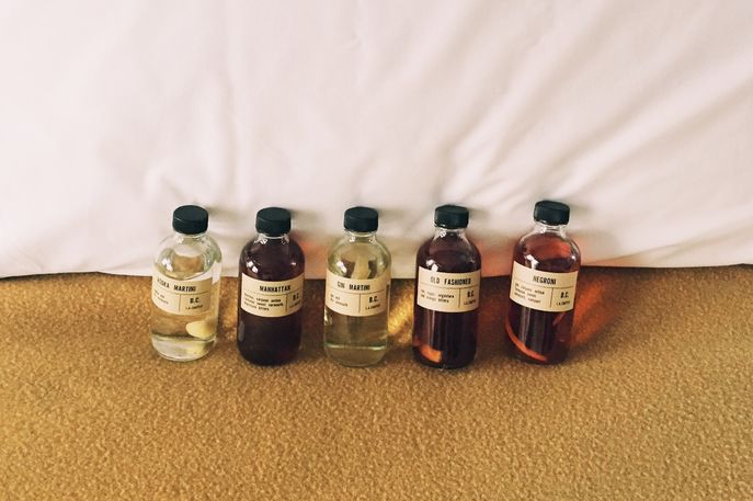 A solution created by Ace Hotel Downtown Los Angeles is a series of pre-batch cocktails that guests can order to drink in their rooms. The bottled cocktails are modified versions of the drinks served in the downstairs bar, adjusted so that they can be mass-produced.