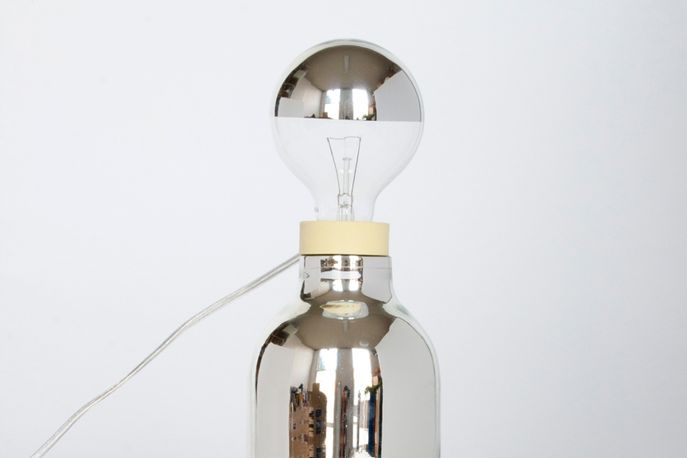 Two pieces in the collection, the Flask Vase and the Flask Light, are made in the same way as the thermos, comprising two layers of glass, with layers of silver between. The Dewar Light and the Dewar Vase are made from borosilicate glass that has been darkened by radiation.