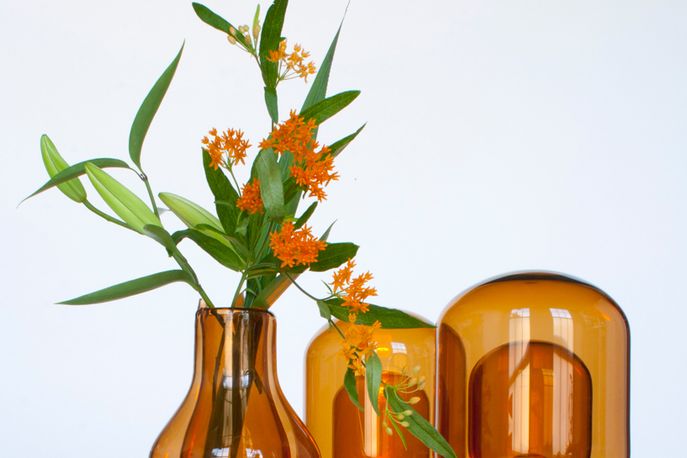The glass lamps and vases have double walls just like a thermos, which gives them a valve-like aesthetic reminiscent of Victorian science experiments. The collection takes its name from the 19th-century scientist James Dewar, who was researching conditions at low temperatures when he invented the thermos.