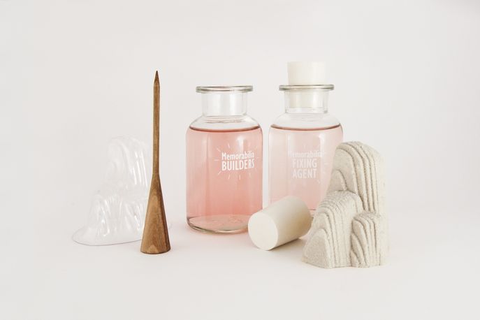 The Bold Design duo was presented with a detector that analyses the bacteria in beach sand. The Memorabilia Factory breaks from the impulse to encase ourselves in a pristine, sterilised environment. Instead, it recognises that microscopic life is everywhere and can make surprising positive contributions to our lives. In this case, bacteria swollen by water expand until the sand becomes fixed like concrete.