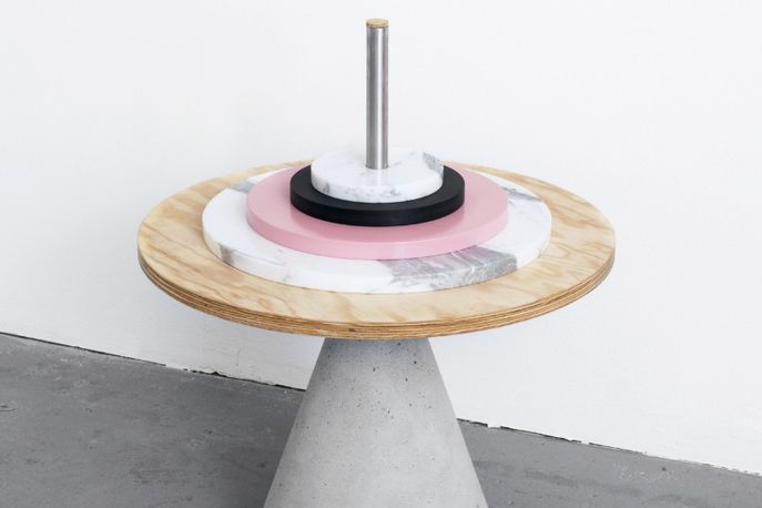 The series is on display this month at Marsano Pop-Up Store in Berlin. Pieces are composed of a mixture of crude and refined materials, including wood, concrete, tubular steel and Calacatta marble.