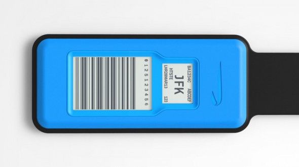 The tags, created by digital design agency Designworks, will be mounted permanently on luggage. Air travellers will be able to hold their smartphones over the electronic tags to update the e-ink display to show the new destination and a barcode containing flight details.